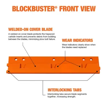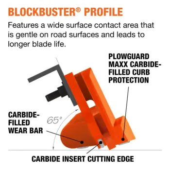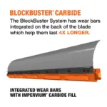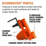 The BlockBuster® Carbide Cutting Edge System lasts 4x longer than standard ¾” x 6″ carbide blades with steel covers. Enjoy increased blade life with bullnose HammerHead® carbide inserts and Winter® Carbide–filled moldboard shoes.