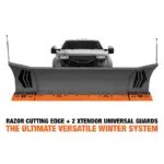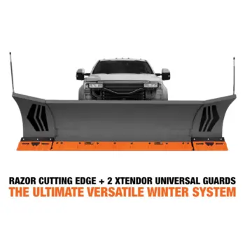 Ultimate Winter System – Heavy-duty Razor® Cutting Edge combined with Xtendor® Universal Plow Guards offers a reliable, high-strength solution.
