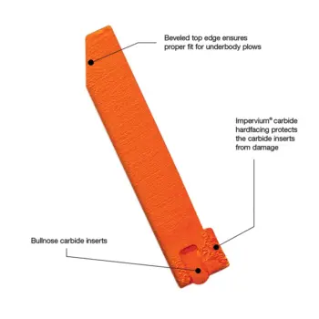 • Winter Carbide applied to the blade face to add abrasion resistance, prevent breakage, and washout