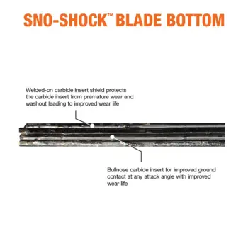Based on field testing and customer feedback, the SnoShock™ system typically lasts 2-4 times longer than conventional carbide insert blades. This extended lifespan is primarily due to the shock-absorbing technology that prevents insert breakage when hitting obstacles—the most common cause of premature cutting edge failure.