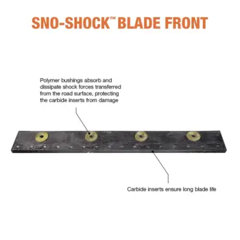 The SnoShock™ system uses an elastomeric cushioning material reduces the effect of impacts on the premium tungsten carbide inserts. When your plow hits an unexpected obstacle or road hazard, this shock-absorbing material flexes slightly to absorb and distribute the impact forces that would normally cause the carbide inserts to crack or shatter. This protection extends the life of your inserts significantly, reducing replacement frequency and costs.