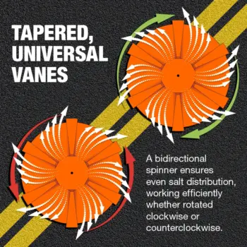 - Tapered, Universal Vanes – Unique spinner design promotes even fill, even spread, and high-feed rates. Supports both clockwise and counterclockwise rotations.