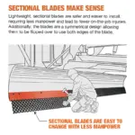 - Quick Installation – Sectional perforated motor grader cutting edges replace dangerous full-length cutting edges