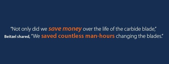 “We have not spent a single minute working on cutting edges during a storm event, we have saved countless man-hours changing blades, we have saved thousands of dollars because we eliminated purchasing hardened steel blades and we’ve eliminated the man hours spent repairing, adjusting and maintaining snow plow shoes.” – Beitzel