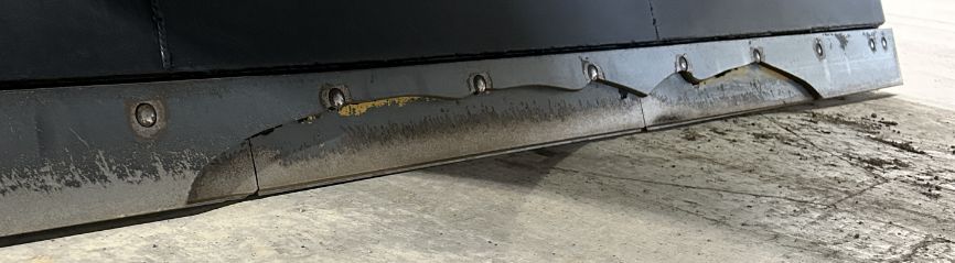 When these gaps open and debris fills in the gaps, the bolts start to experience shear forces. This can cause bolts to break and cause parts to fall off the plow, leaving hazards to motorists in the roadway. Carbide and cover blade set-ups create more spaces for debris to build up and increase the potential for bolt failures due to shear forces.